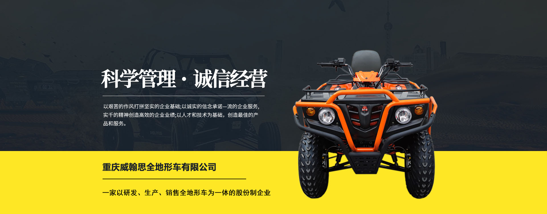 重慶威翰思全地形車有限公司成立于2016年9月,一家以研發(fā)、生產(chǎn)、銷售全地形車為一體的股份制企業(yè)。公司銷售額超過5000萬?,F(xiàn)有專業(yè)市場售后服務(wù)團(tuán)隊。公司秉承“敬業(yè)、超越、活力、用戶至上”的企業(yè)精神,“以人為本,合作共贏;”的核心價值觀,“嚴(yán)格管理創(chuàng)優(yōu)質(zhì)、名牌戰(zhàn)略拓市場”的質(zhì)量方針,使公司一步步邁上新的臺階。公司與重慶航天巴山摩托車制造公司達(dá)成戰(zhàn)略合作協(xié)議。共同出資致力于沙灘車旅游市場產(chǎn)品研發(fā),項自運(yùn)營指導(dǎo),市場維護(hù)等全方位市場拓展。重慶航天巴山摩托車制造公司授權(quán);重慶威翰思全地形車有限公司為中國區(qū)唯─戰(zhàn)略合作伙伴。